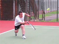 August 11, 2004 The Match Doug played this guy from Drew in tennis like 5 years ago and this was the long awaited re-match. Being down 40-love in the first game, Doug rallied back to steal that game as well as the next two. He won the first set on a hard fought 7-5. The second set was stopped at 5-5 as the heavens opened up with rain. So Doug took home some well deserved bragging rights thanks in part to his trademark gritty play. More... |