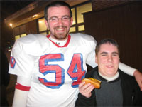 Switcheroo (Photoshop) Here is another project I did using Adobe Photoshop 7.0. I basically swapped Doug's head with Chuck's head using the Extract command, some smudging, some healing tool and some other random do-dads. Doug looks like a svelte wide receiver and Chuck looks like some deformed fat kid who likes hot dogs. Came out well- you can zoom in and it's still hard to tell this is a fake. View... |