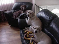 The Dogs: Scout, Necco and Zoe Here's a gallery featuring the three labrador retreivers that I used to share a house with. I'm pretty sure my Mom got each one to replace her sons when they went off to college... Scout is a yellow lab and she's the oldest, around four years. Necco is a chocolate lab and a little younger than Scout. Zoe is a yellow lab and at a couple years younger, she's the baby. More... |