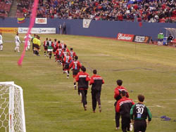 halftime rolled around. In the second half, Clint Mathis put the Metros on the board 1-0 with a free kick that