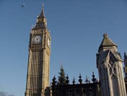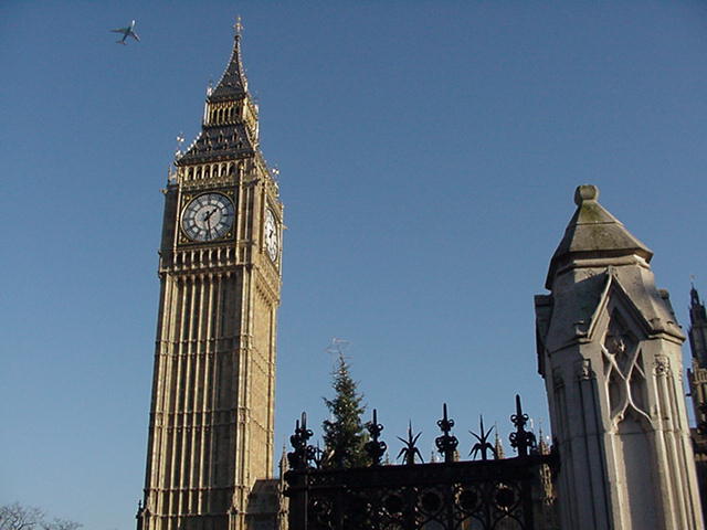 | It was actually pretty awesome walking around central London alone. The English are very un-intimidating and they speak the language, so I felt ok. I went to Nike Town, London and watched all the double decker buses go by. Towards the end, I luckily stumbled upon Big Ben and Westminster Abbey. In this picture, check out the jet in the upper left. It's pretty cool. When I first saw Big Ben, I didn't even think that it was actually Big Ben because it wasn't, um, big. I had to go into a gift shop and check out a post card of Big Ben to confirm my sighting. |