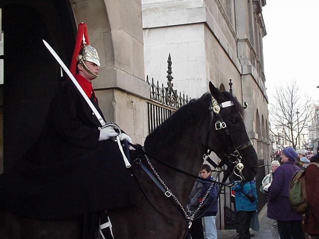 I'm still not fully sure if I saw Buckingham Palace. I think I did. If it's what I thought it was, I was very unimpressed. Looked pretty dumpy. I guess I associate palace with, I don't know, luxury, extravagance. But I saw the Queen's life guards. That's the guy you see on the horse. I'm guessing they'd be at Buckingham Palace. Who knows. But these guys are all serious and they're the ones that don't smile. Life guards. Interesting. I got to see the changing of the guards. That was kind of cool. So it was a busy twelve hours and a very successful sojourn, but Nepal awaited... |
