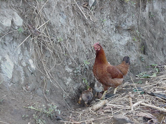 It's something how many animals you see just walking around. Especially animals that you're used to seeing domesticated, or confined to a coop or cage. Like this rooster. Notice the little chicks to the side of the rooster. I was surprised to see so many roosters walking around the villages. I was also surprised every morning when I was awoken by roosters doing their thing at the sun. And there were roosters waking us up everywhere we went- in the hills, in the mountains, in the cities, in the villages. |