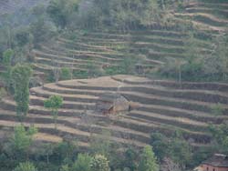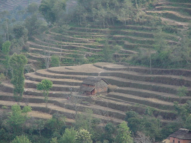 Here's a great picture of a farm, seemingly in the middle of nowhere. The steps in the land are created by the farmers.
